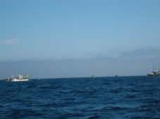 地球岬沖150mへ向かうもイカ釣り漁船多数。