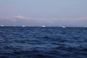 港内はハスの葉。6:45出港。141゜21分水深100mあたりを目指そうと思います。