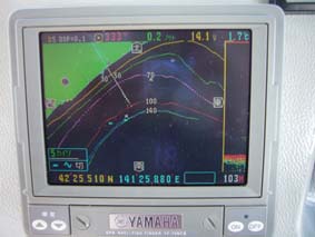 と、思ったら、風つよ〜・・・。そのうち収まるはず。6:40、Yさんと2名で出港。