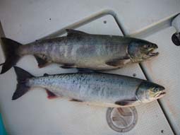 跳ねバンバンもHITせず・・・。ルアー追って船べりまでサケついて来るが喰わない・・・。(へたくそ)