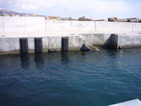 トレーラー移動時の一時係留岸壁。