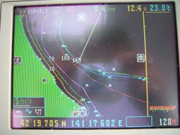 いや〜、ノロノロ運転、や〜っと、17分海域到着です。
