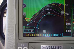 港内はハスの葉。6:45出港。141゜21分水深100mあたりを目指そうと思います。