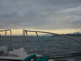 朝6:15出港。港を出るとやや風波あり15ノット走行。