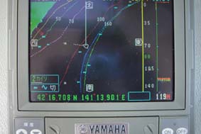 途中、イタンキ沖に鳥山あり、魚探に2層の反応。