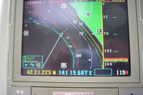 沖に流れ140m過ぎるとイカ乗り悪くなり、ここでは125m位でなんとかかかるという渋さ。
