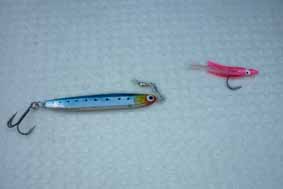 60gイワシカラーのジグと、ずるく前にピンクのタコベー。
